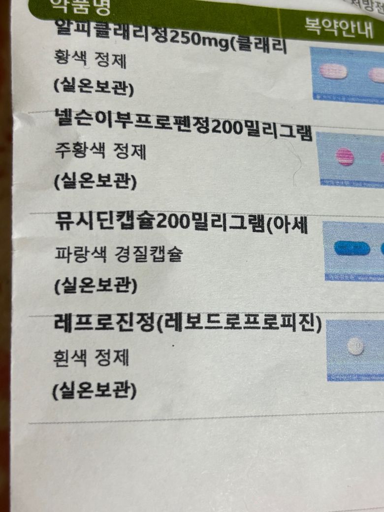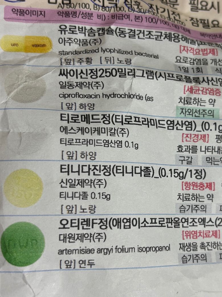 첫 번째 사진이 감기약이고 두 번째 사진이 방광염 약인데, 이 두 가지 처방약들 함께 먹어도 괜찮은지 궁금합니다.