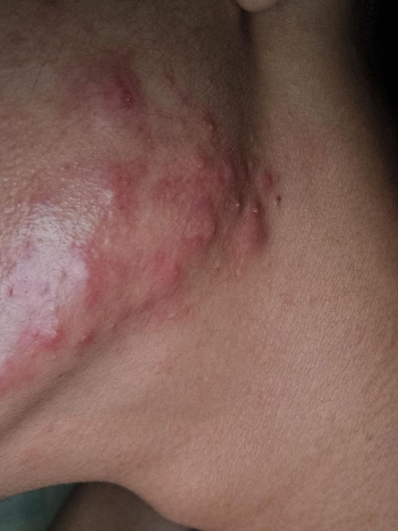 갑자기 턱밑에 여드름 같은게 막 나네요