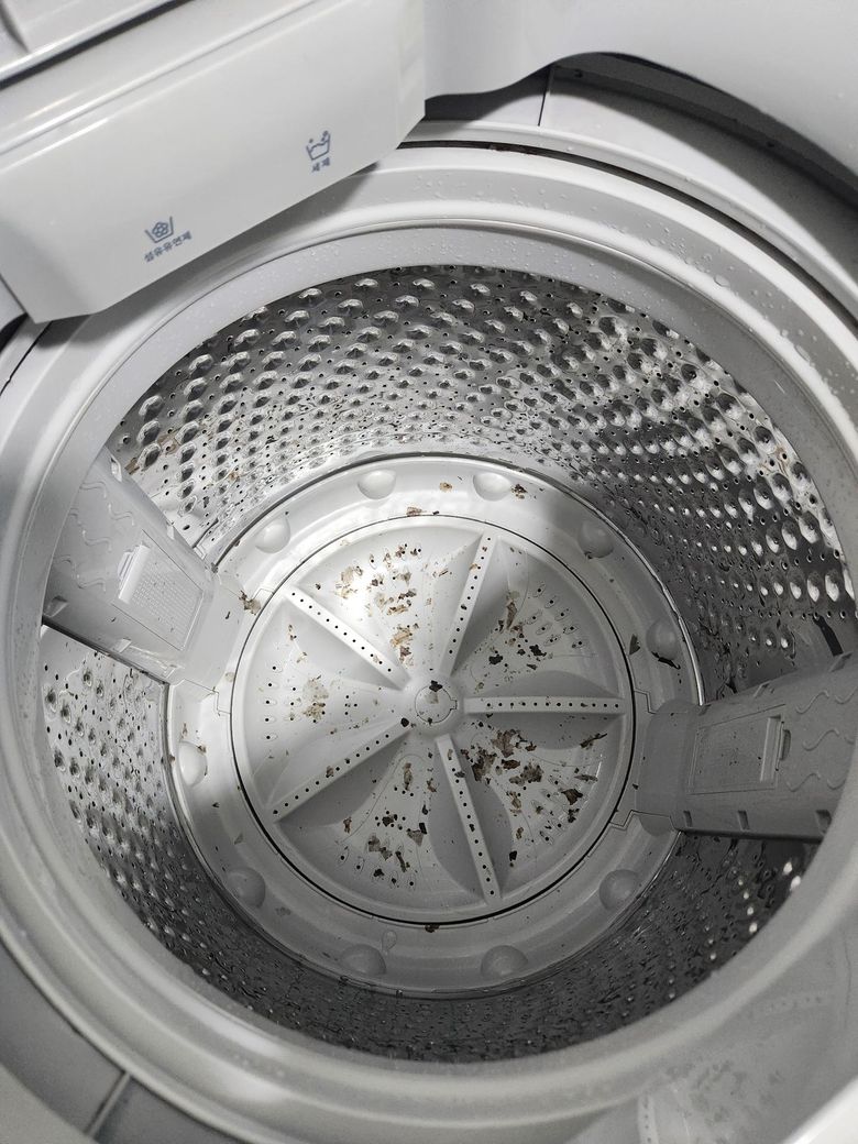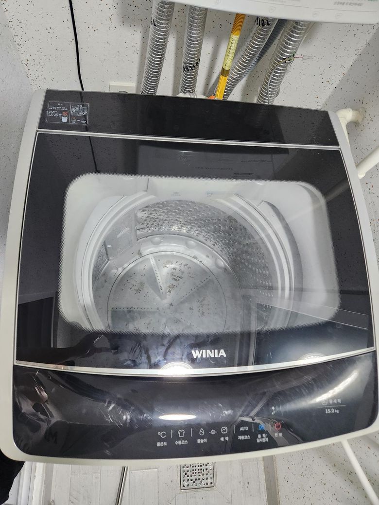 위니아 세탁기이고 통세척하고 헹굼하고 2번이나 돌렸는데 바닥에 먼지 제거가 되지 않습니다