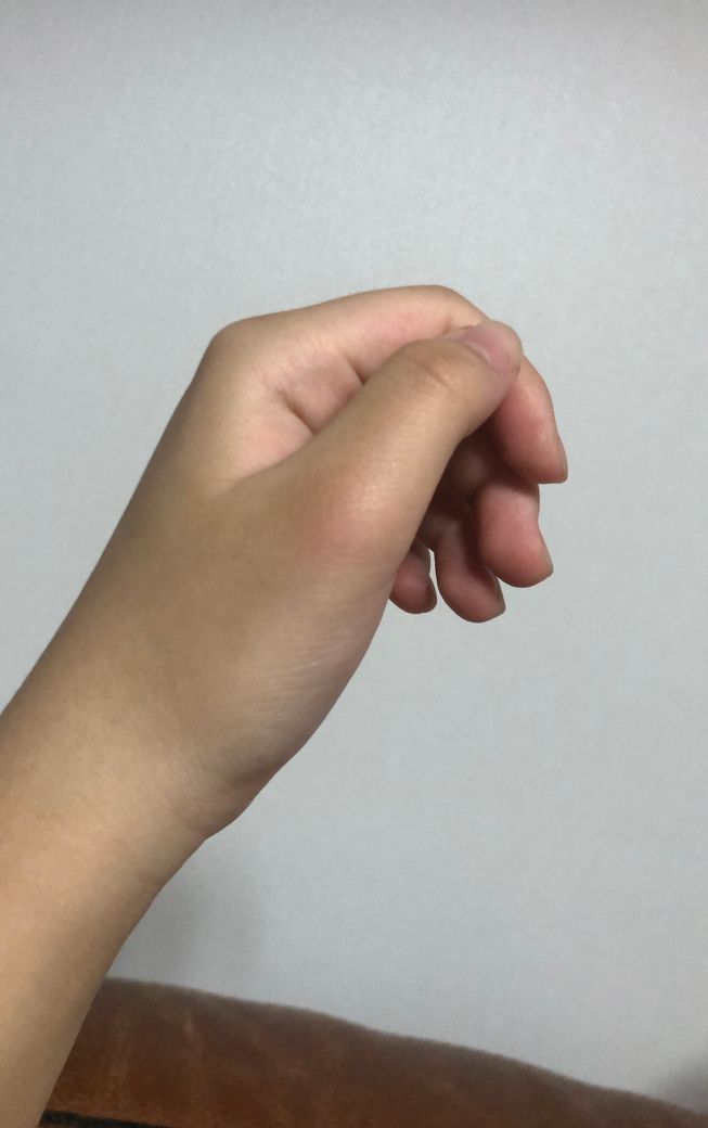 구기종목을 하다가 공을 잘 못 잡아서 엄지손가락이 삔 거 같습니다.
