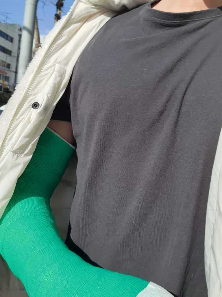반깁스(부목)와 깁스의 차이인데, 깁스는 완전히 손을 감싸버려서 움직임을 철저히 제한할 수 있습니다. 더 심한 근골격계 손상에 사용되는 이유이고, 고정에 더 효과적이라 볼 수 있습니다.