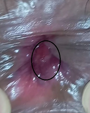 손으로 항문을 잡아 당기면 보이는 부분입니다.