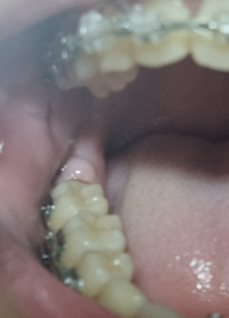 지금 사진으로는 정확한 판단이 어렵습니다. 다만 흔한 치료 예후는 아닌 것으로 보여집니다. 드라이 소켓 등은 아닌 것으로 보여지나 치료 양상을 한번 평가를 받아보셔야 할 것으로 보입니다. 따라서 다시 치과를 방문하여 한 번 검사를 해보시길 바랍니다. 현재 사진으로는 정확한 판단이 어렵습니다.