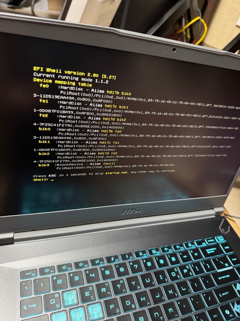 지금 EFI Shell 화면이 떴는데 윈도우 설치 USB가 필요해요.