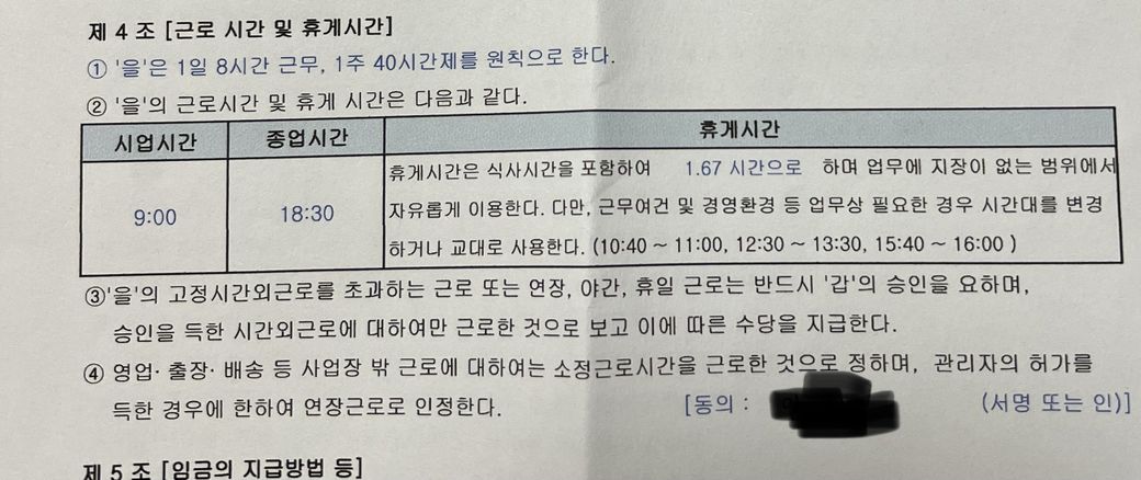 근로계약서에 그렇게 명시되어 있고, 근로자가 서명을 했으므로,