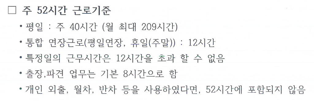 질문의 의도를 파악하기 어렵지만 올려주신 자료를 보면 한주 52시간을 초과할 수 없고 하루 연장시간은 4시간까지만