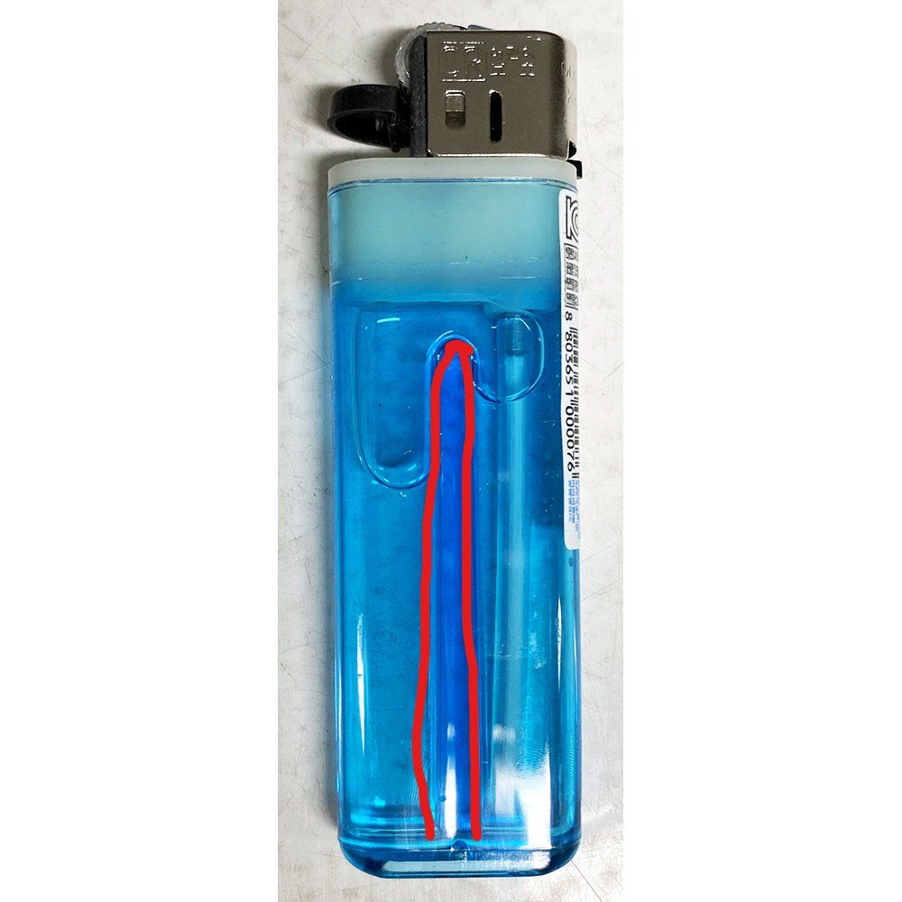 이 가스라이터에 빨간색으로 칠해진 칸막이가 있는 이유가 뭔가요?칸막이가 없다면, 라이터 안에 액체가스가 더 들어갈 수도 있고 가스라이터를 더 오래쓸 수 있어 보이는데도 말이죠