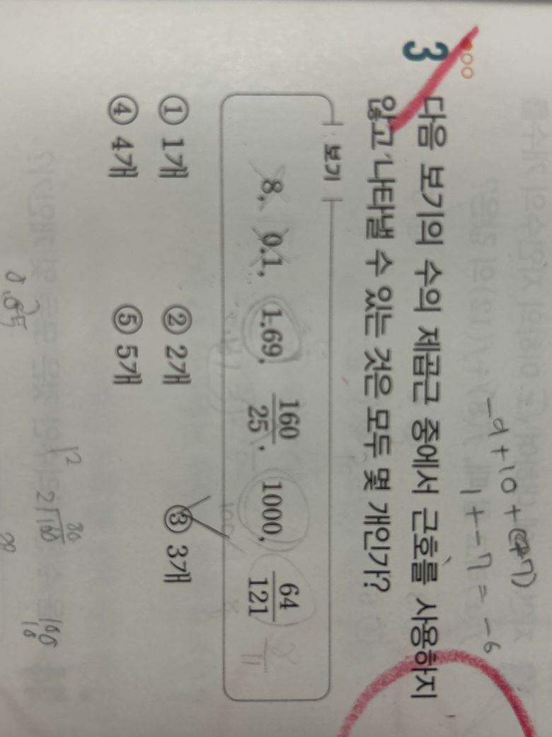 제가 문제를 풀고 채점을 하는데 뭔가 아무리 생각해도 1.69,1000,64/121 이렇게 3개인거 같은데 답지에는 1000,64/121 이렇게 2개라고 나와있네요 답지 오류인가요 아님 답지에 있는 답이 맞는건가요??