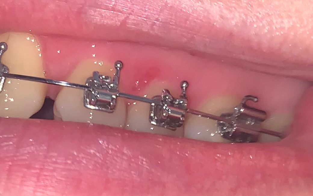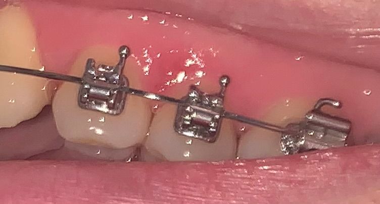 현재 잇몸이 자극을 받아 붉은 상태로 보이며, 교정시 치아의 이동으로 인해 일시적인 현상일 수 있습니다. 만약 통증 및 붓기가 지속되는 경우에는 치과를 방문하길 권합니다.