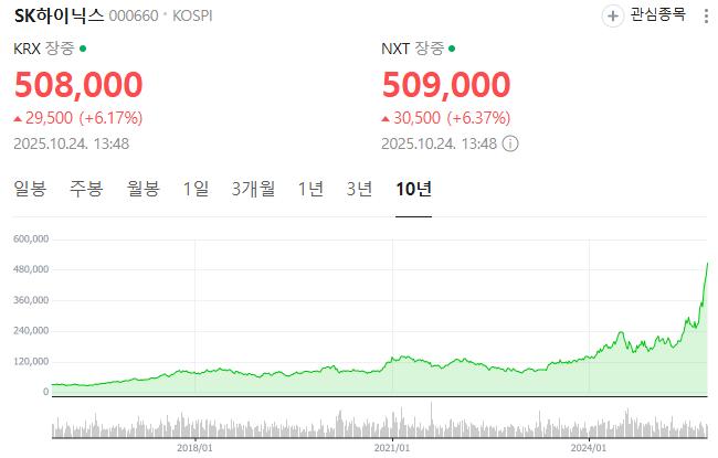 오늘도 하이닉스가 6% 정도 상승해서 51만원까지 갔더군요. 1년 사이에 3배 이상 상승한 거 같은데 시총도 큰 기업이 이렇게 상승하는 것이 광기로 인한 상승이 아닐까 싶은데 실제로 엄청난 호재가 있어서 상승하는 건가요?