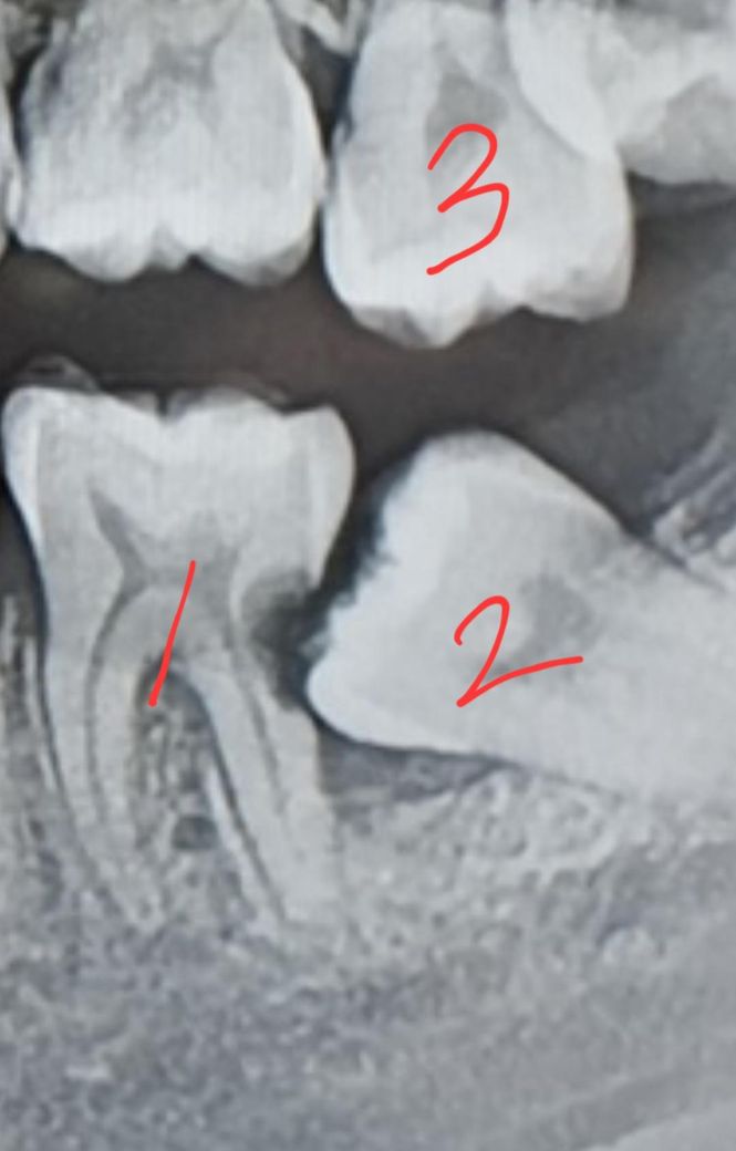 사진에 보이는 1.2번 치아는 발치를 하시고 나서 임플란트를 하시는게 좋을것같습니다. 사랑니 떄문에 앞치아가 많이 썩어서 발치를 하셔야될것같습니다.