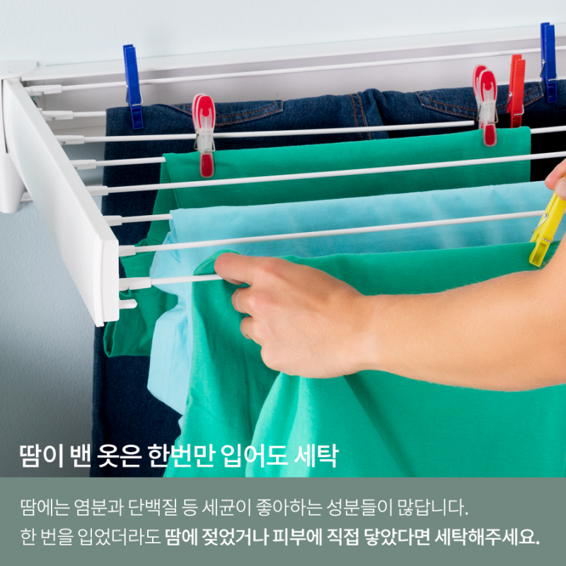 한 번을 입었더라도 땀에 젖었거나 피부에 직접 닿았다면 꼭 세탁한 뒤 옷장에 보관해 주세요.제대로 환기가 되지 않으면 어떤 방법을 쓰더라도 효과가 떨어지게 됩니다.