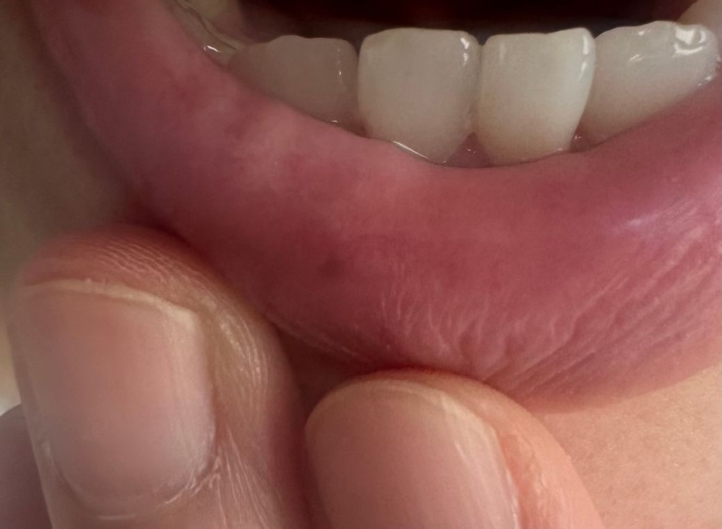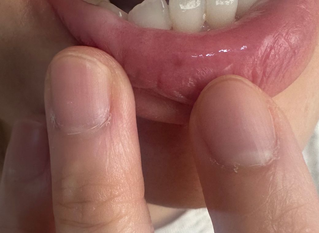 한 일이주 된 거 같아요 깨물었던 기억이 나서 잘 아물었나 하고 보니 사진처럼 약간 검은 점이 생겼어요