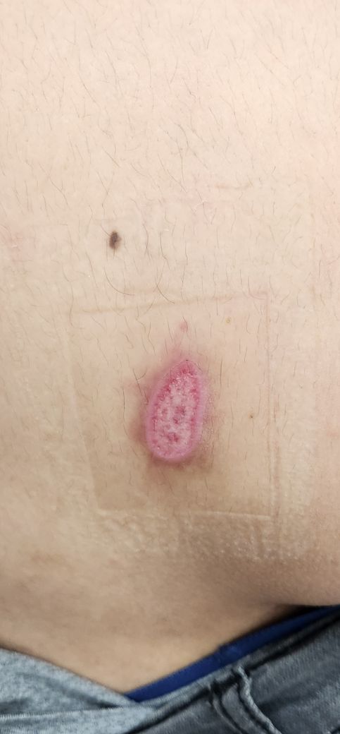올려주신 사진으로 미루어 현재 상처는 회복 중이므로 지금과 같이 감염이 생기지 않도록 소독을 규칙적으로 하고 습식 밴드를 붙여 주기 바랍니다.