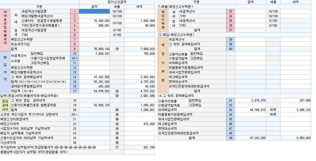 부가세예수금 7,698,918, 잡이익(세액공제) 1,086,801 / 부가세대급금 4,707,332, 미지급세금 931,785