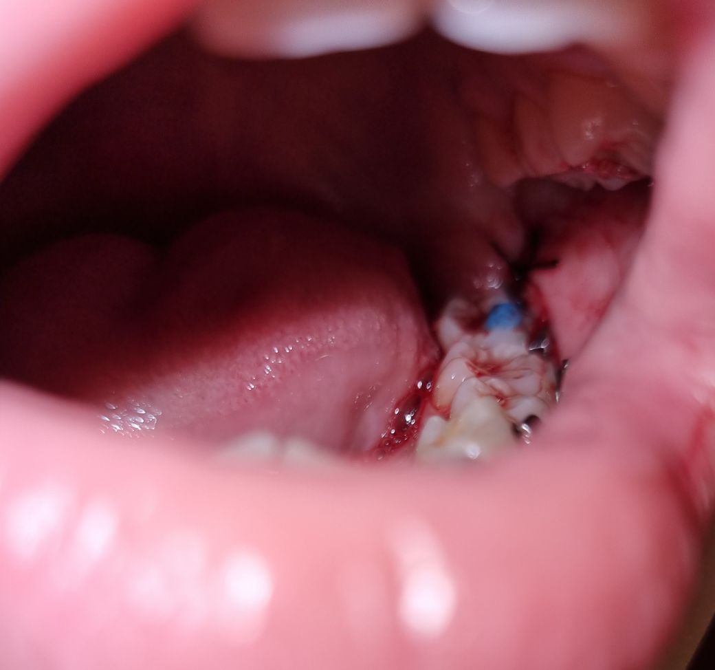 매복발치를 하신거 같네요. 크게 걱정하실껀 아닌거 같습니다. 지혈만되셧다면 실밥 푸시는날 가셔서 나머지 실밥 푸시면되고, 걱정되시면 치과 가셔서 소독한번 받으셔도 됩니다.