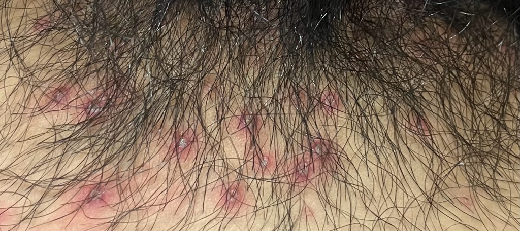 헤르페스보다는 모낭염 가능성이 높다고 판단됩니다. 일단 검사 결과를 기다리기까지 항생제 연고부터 바랄보시기 바랍니다.