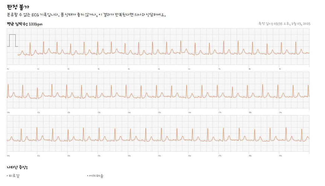 만일 평상 시 증상이 반복된다면 병원을 방문하여 부정맥 검사를 받기 바랍니다.
