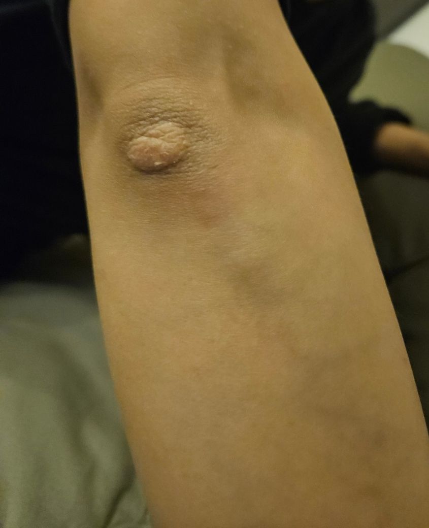 며칠전부터 팔꿈치가 가끔 간지러워 긁었는데 지금보니까 팔꿈치에 머가 났네요ㅜㅜ 이거 사마귄가요?? 병원 안가도 이대로 냅두면 자연치유 될까요??