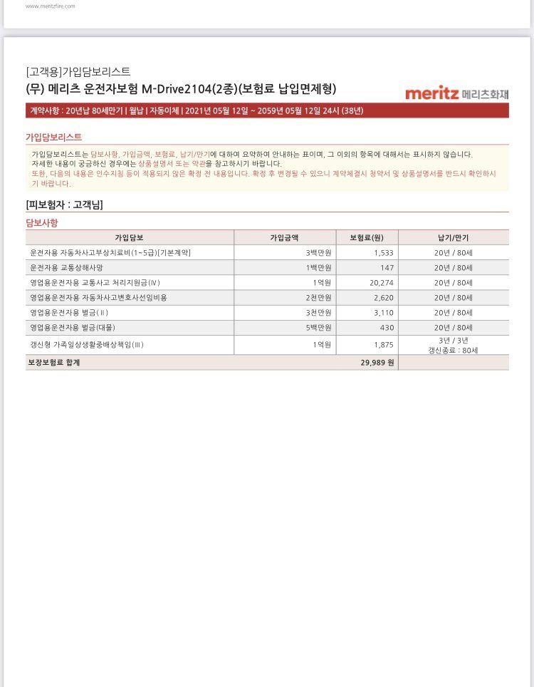 보험 다시한번 봐주시겠어요 ?