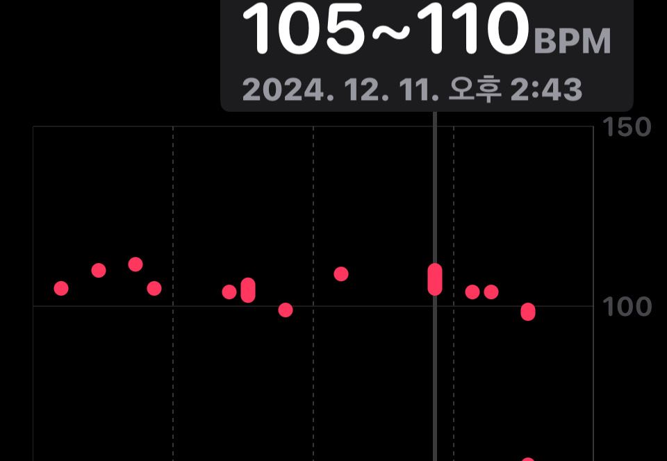 식사를시작하고 나서 2~3시간정도는 심박수가 평균 100정도입니다.