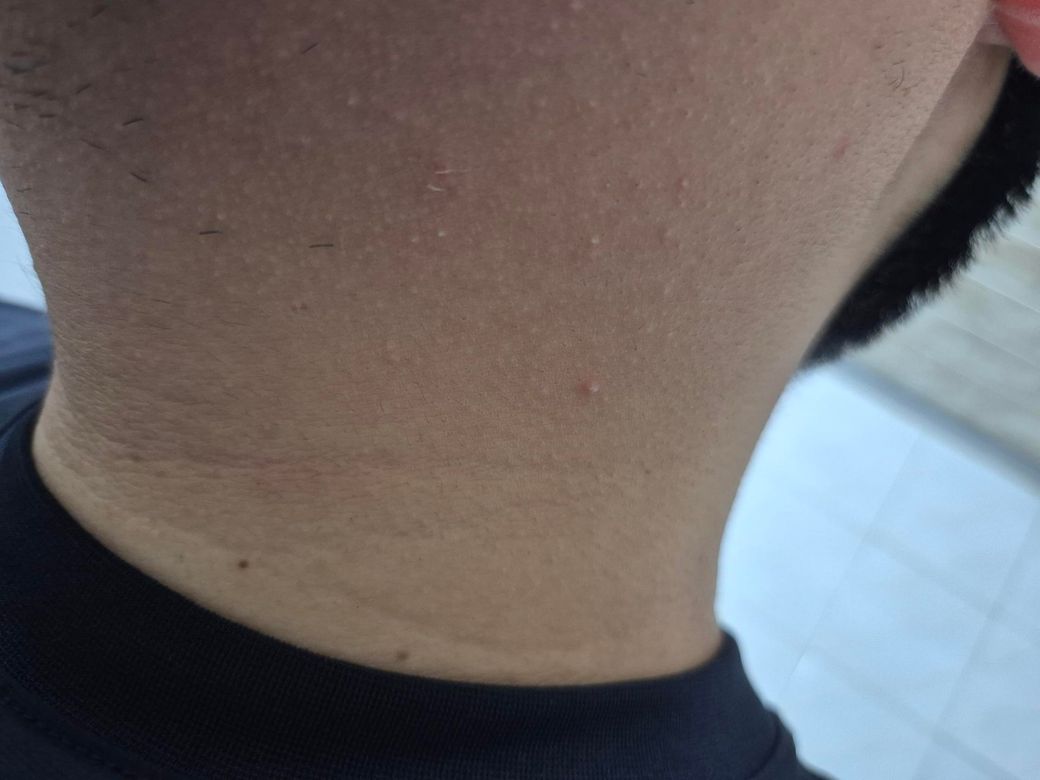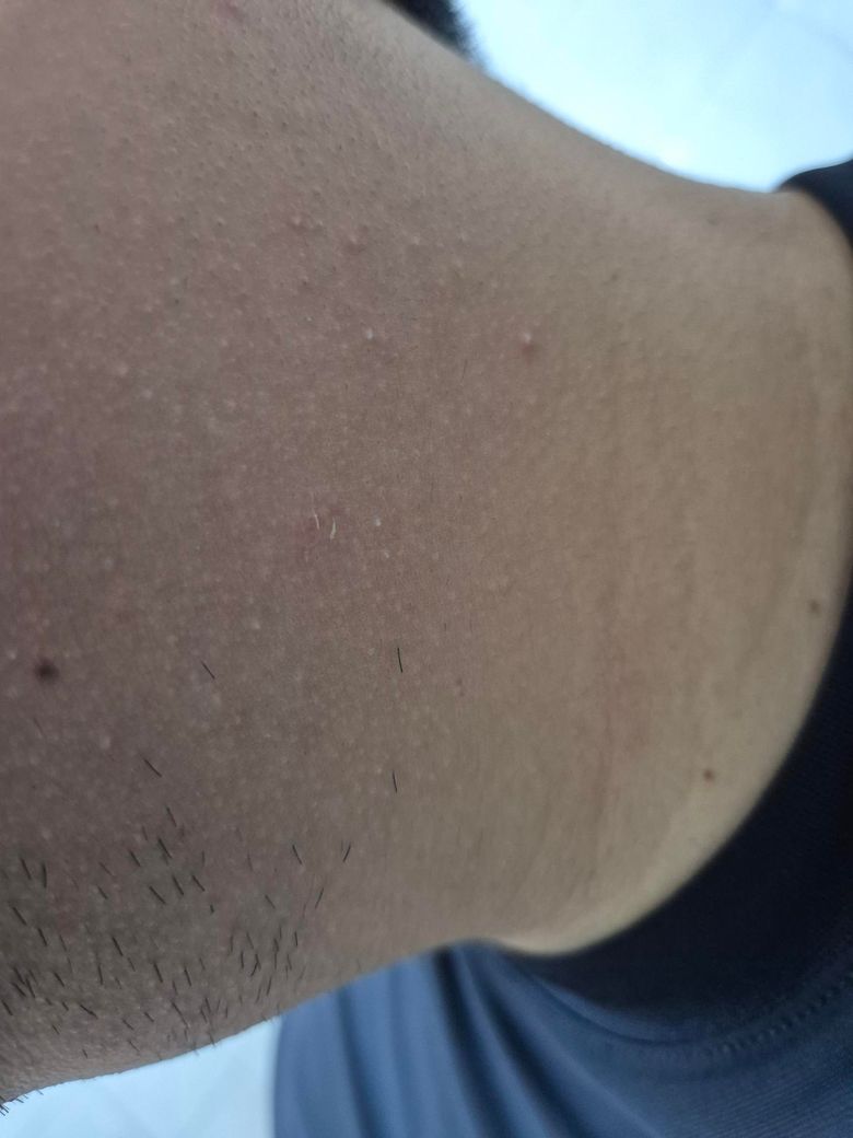 샤워하면서 주위를 만지가가 발견했습니다. 가렵거나 뜨거운 느낌은 없습니다. 팔, 다리, 등, 가슴에 모공각화증이 굉장히 심한데 혹시 모공각화증일까요?