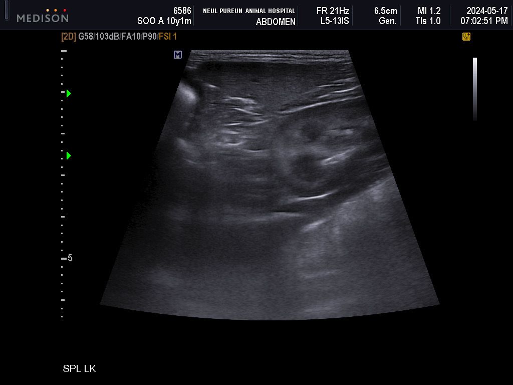 저희 강아지 5월에 찍었던 초음파인데 이게 비장 맞나요? 이번에 찍은 초음파에선 비장에 작은 결절이 하나 보였는데 이때도 보였던 건지 알 수 있을까요? 그 외 특이사항이 있는지도 알고 싶어요