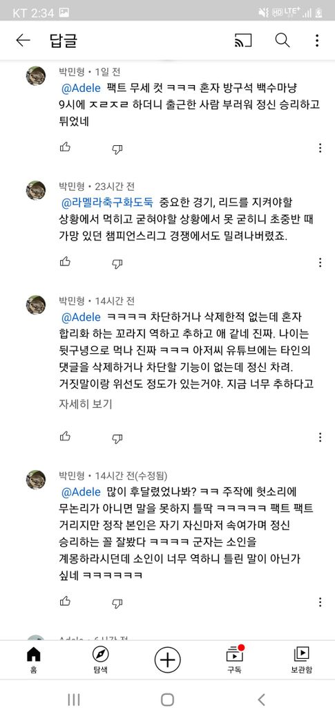 이 사람 고소 가능한가요? 순서는 좀 뒤죽박죽이긴 한데. 저도 약간 욱해서 뭐라 달긴 했는데 캡쳐하기 전에 다 지웠거든요? 고소가 가능할까요? 전 심한 욕은 안했고 그냥 찐따나 손까 정도로만 말하긴 했습니다. 고소가 가능할지 궁금합니다.