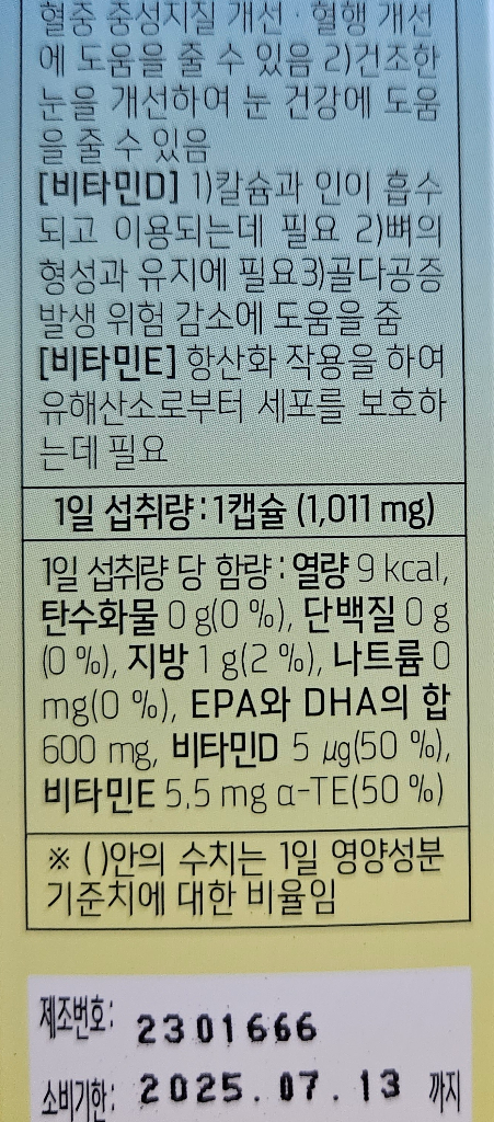 섭취 중인 오메가3: