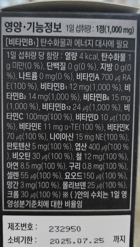 섭취 중인 종합비타민: