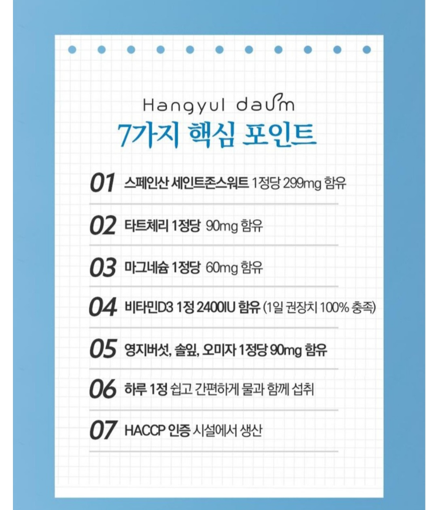 매일 드셔도 괜찮은 구성이지만 세인트존스워트는 약물상호작용이 많은 성분이라서 병원이나 약국에 갈때마다 세인트존스워트를 먹고있다고 하셔야해요.