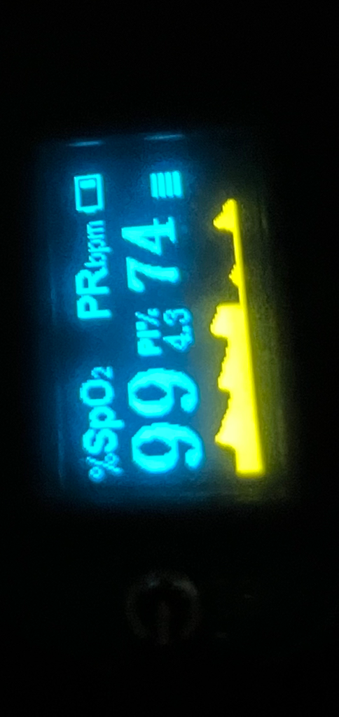산소포화도 기계를 통해서 부정맥을 감별할 수 없습니다. 기계의 파형이 중간에 잘 보이지 않는 것은 기계가 피부와 제대로 맞닿아 있지 않아서 발생하는 것으로 부정맥과 무관합니다. 부정맥 아닙니다.