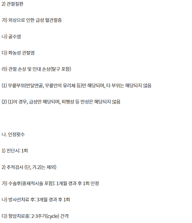 관절질환의 경우 진단시 1회 급여적용이 되며 추적검사 시에는 급여적용이 되지 않습니다