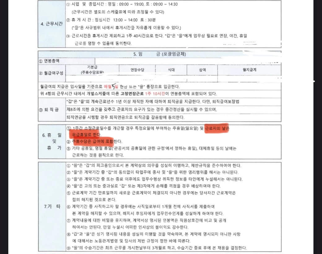 근로계약서 상 위와 같은 내용의 근로조건은 나와있지 않습니다.