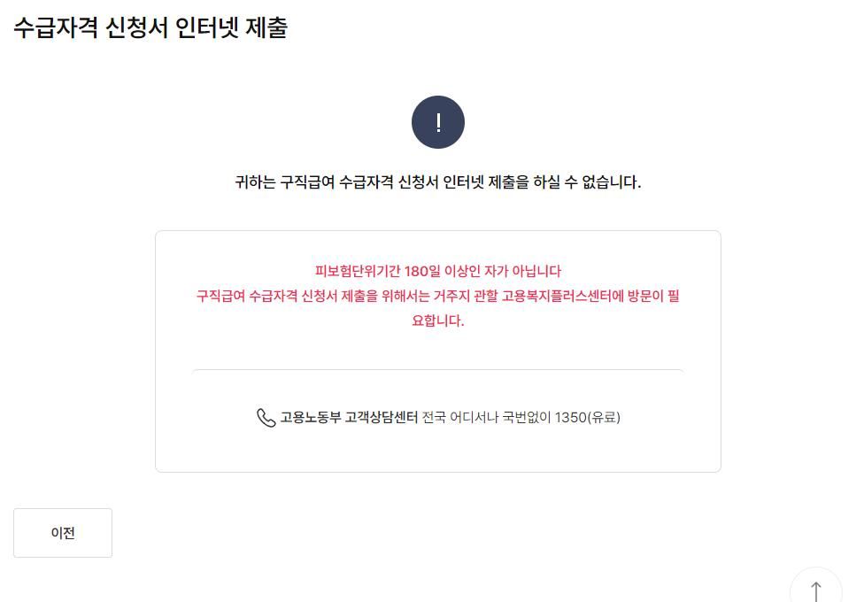 이전 2년 7개월 직장의 경우에도 이직확인서를 접수해줘야 합니다. 아마 접수가 되지 않아 180일 미만으로 나오는것 같습니다. 감사합니다.
