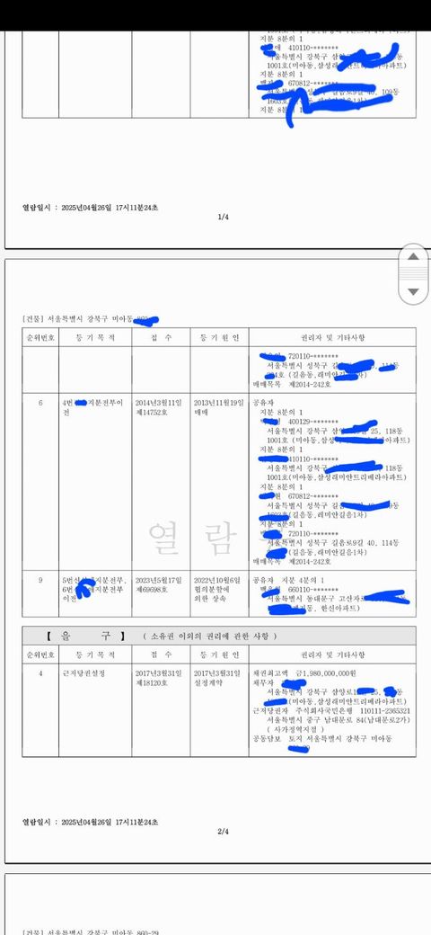 또 을구를 보면 채권 최고액이 상당하여 보증금 등이 보호 되기 어려울 여지가 있어 주의를 요합니다.