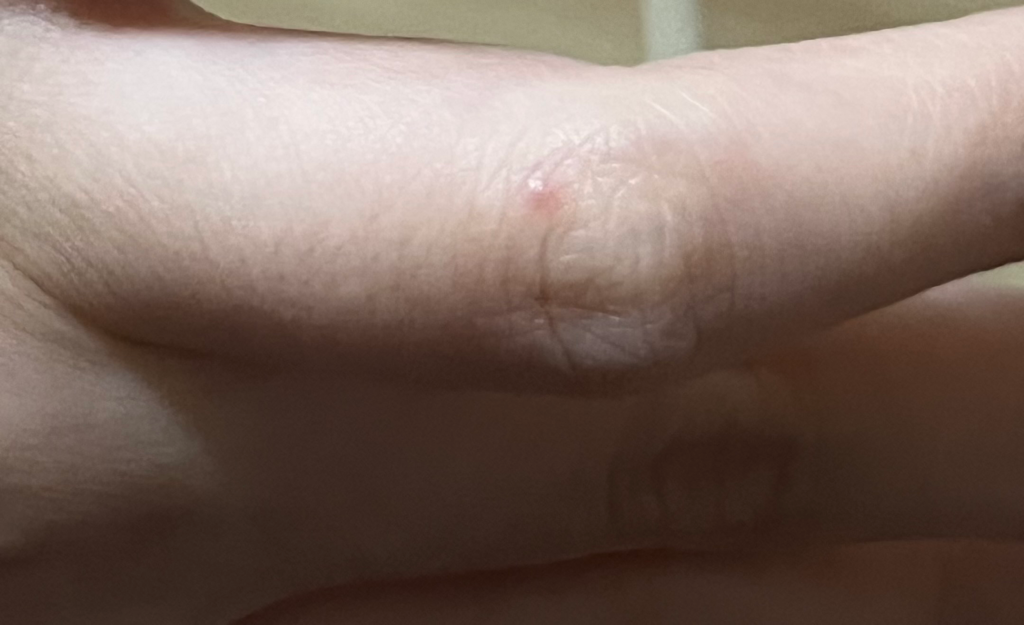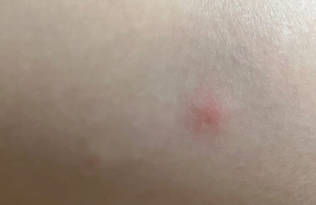 1-4mm 정도 작은 농포가 여드름처럼 붉게 올라 옵니다.