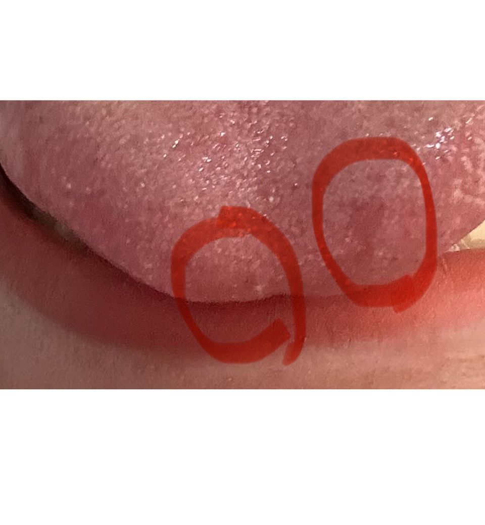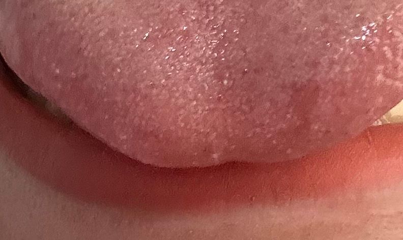 약간의 까짐처럼 색 다른 부분과 혀 끝에 하얀