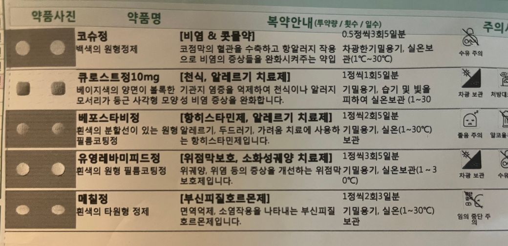 이비인후과 처방약과 피부과약 처방약 같이 먹어도되는지 알려주세요,