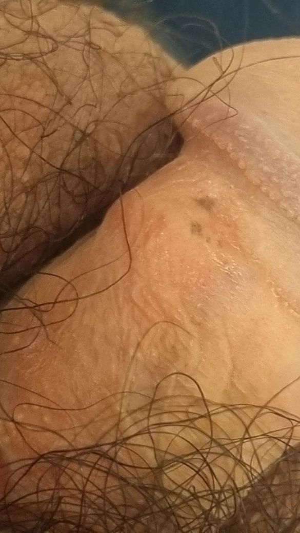 음경 주름부분 사진이고 관계는 약 5개월 전이고 오돌토돌한게 있습니다 아프지는 않고요 한달 전 소변검사에서는 음성이었고 전에 비뇨기과 갔을때 육안으로 보고 헤르페스 아니라고 했는데 걱정되서요...