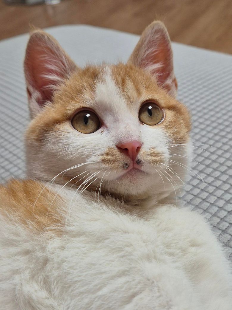 갑자기 아기 고양이 얼굴 주둥이에 검은 점 두 개가 생겼는데 피부병일까요?😢😢