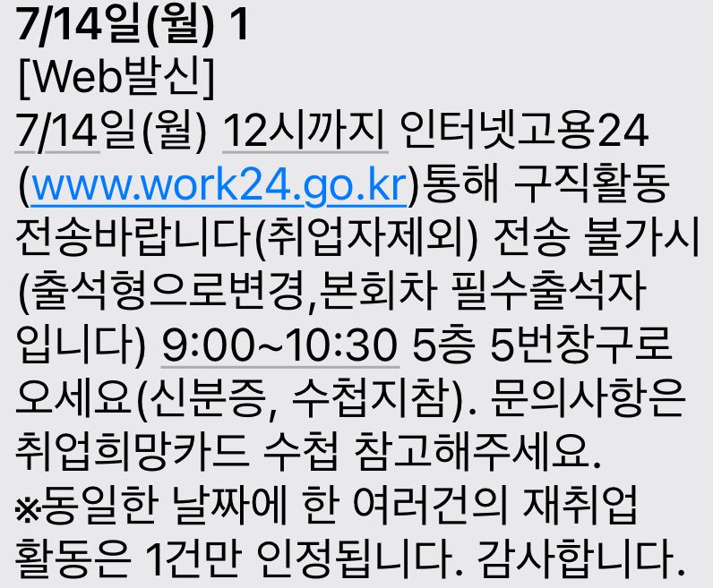 실업급여 마지막회차입니다. 구직활동도 하고 실업인정 신청 예정입니다. 그런데 고용센터에서 온 문자를 보니 살짝 혼돈이 오네요.