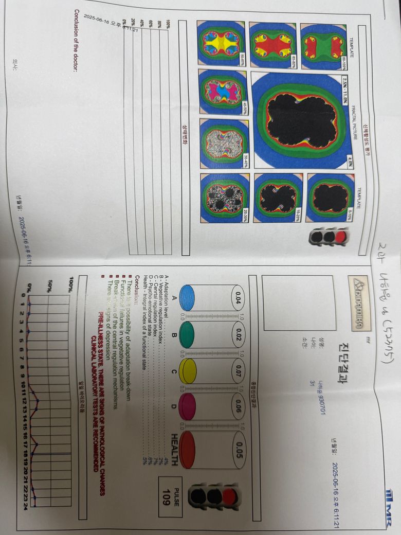 땀 흘릴때마다 어지러워서 한방병원가니 자율 신경 검사를 하고 진맥 짚어보더니 몸상태가 엉망이라햇는데요ᩚ. 자율신경 검사한거 보시면 안좋게 나왔잖아요ᩚ. 이걸로도 자율신경실조증이라할수가잇나요ᩚ?