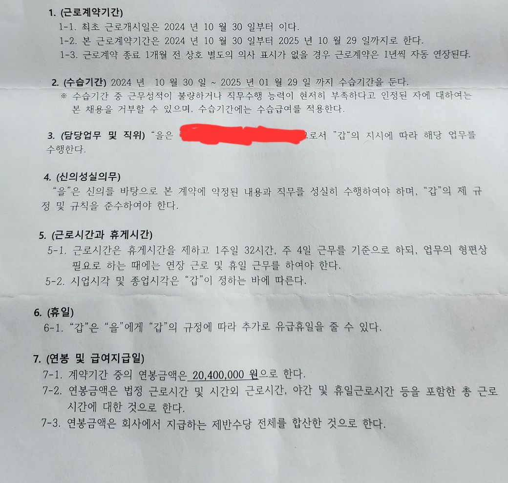 근로 계약서 확인 좀 해주세요(급합니다) 복 받으실 거에요ㅠ