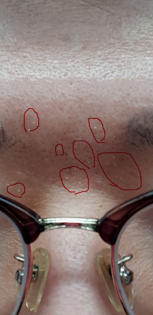 비립종과 면포가 섞여 있는 양상입니다. 셀프케어를 잘 못하면 병변이 심해지거나 모공이 넓어질 수 있으니 피부과에서 적절한 처치를 받으시고 관리법도 설명들으시기 바랍니다.