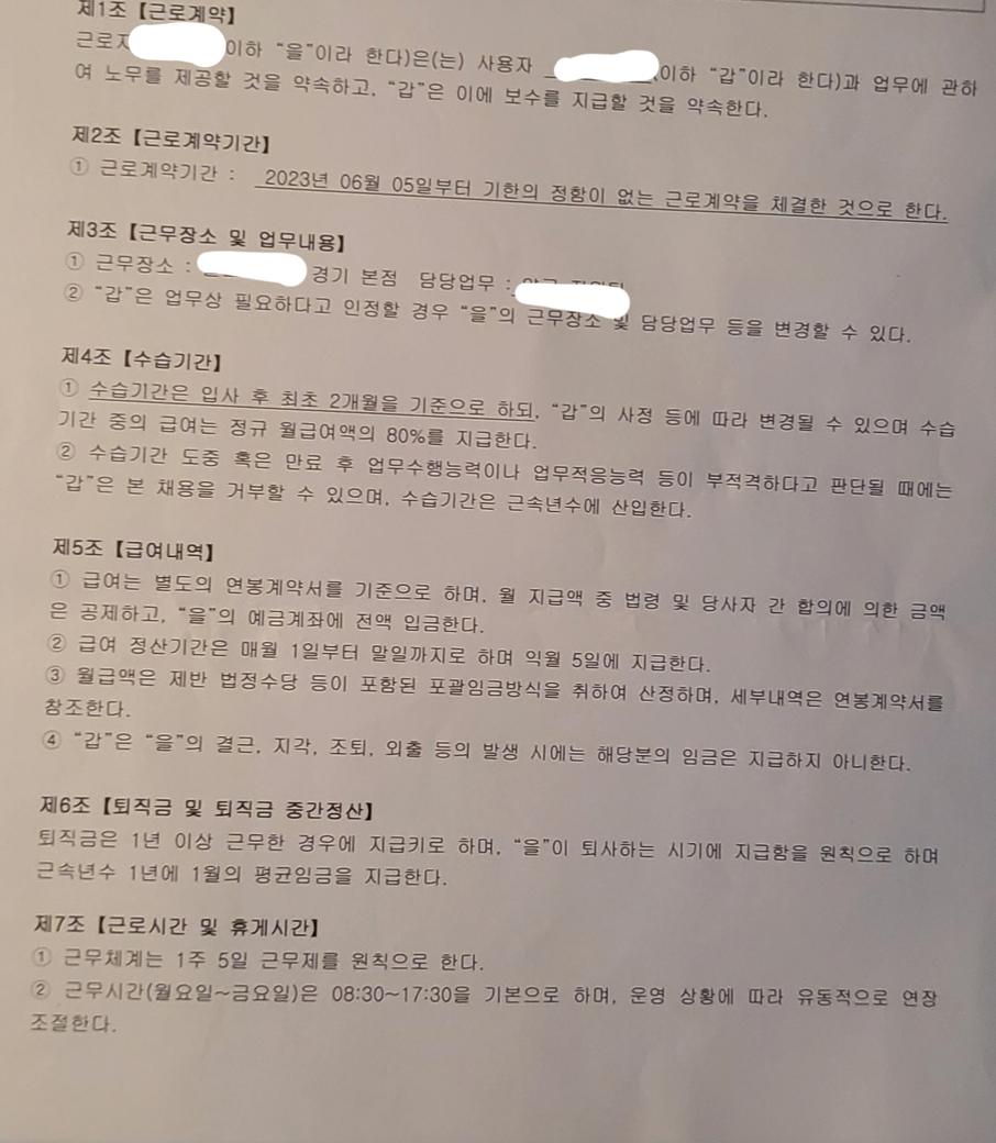 그렇게 할려면 계약서 다시 작성을 해야한다 라고 하셨습니다 그러면서 퇴사하고나서 의의 제기 안할 거냐고 물어보셨습니다 일단 이야기가 흐지부지 됬는데