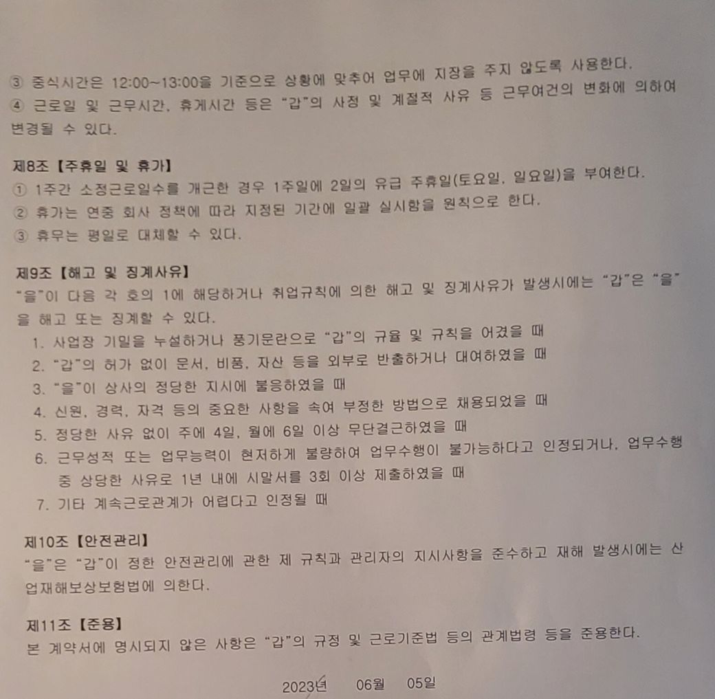 4. 제가 할말은 아니지만 다음부터는 근로기준법이 전면적용되는 5인이상 사업장에서 근무하시길 바랍니다.