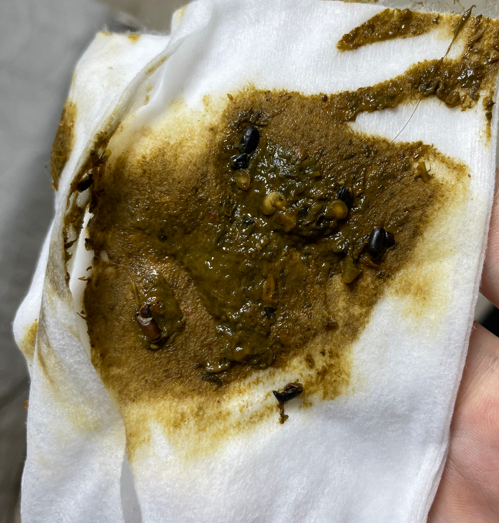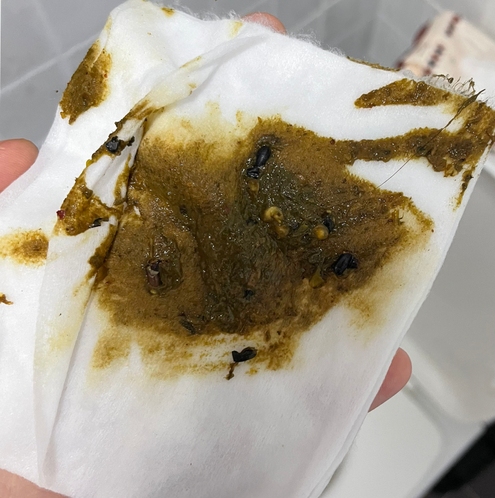 사진의 대변은 흑색변이 아닙니다. 먹은 음식 중 검은색의 무언가가 있었을 뿐 정상변에 가깝습니다. 변 색깔때문에 염려치 않으셔도 괜찮습니다.