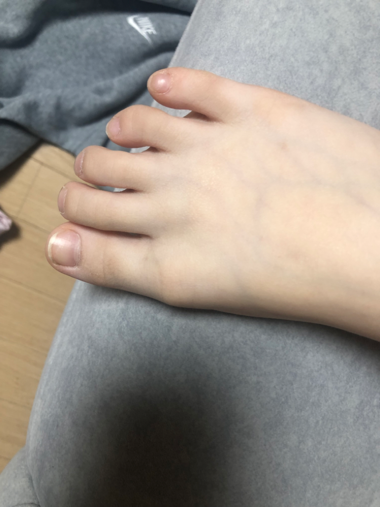 사진을 보니, 발가락이 휘어서 옆에 발가락 위로 올라오지는 않는 것으로 보입니다.