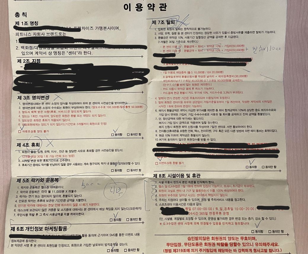 헬스장 3개월 기간권을 2024.10.24에 구매하고 10.25에 환불 요청을 하였으나 계약서 상 환불 불가로 요구가 안 받아져서 소비자원에 문의한 결과.